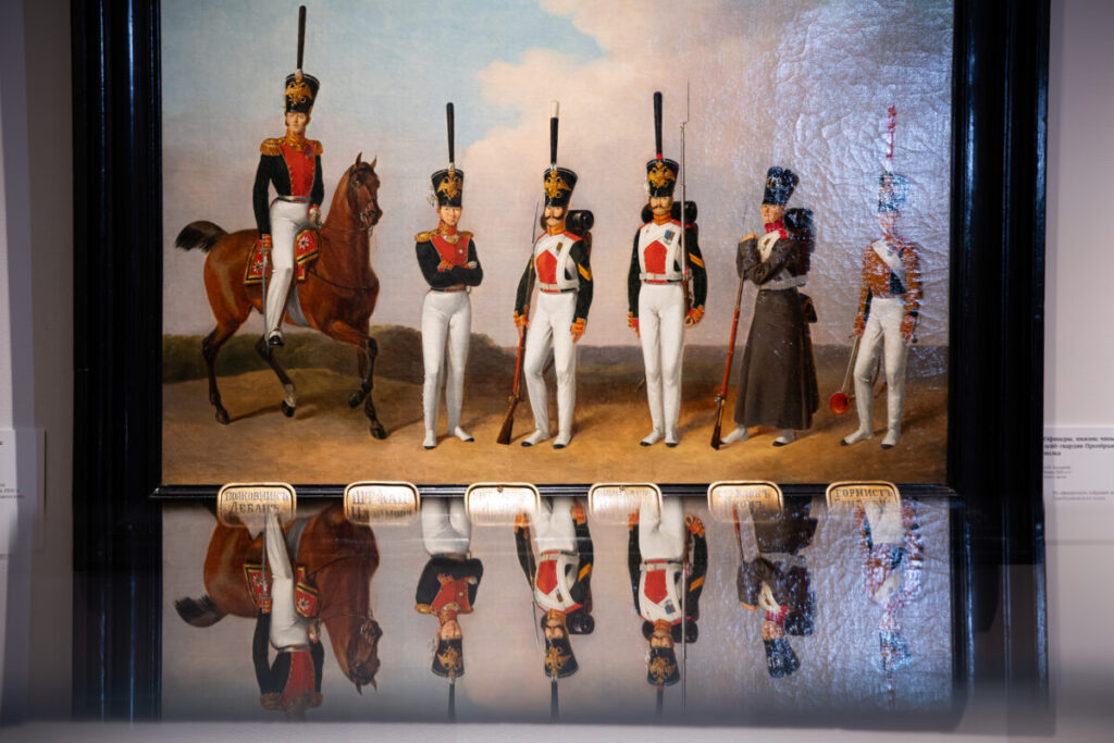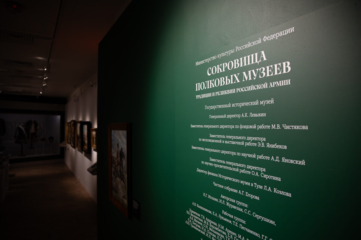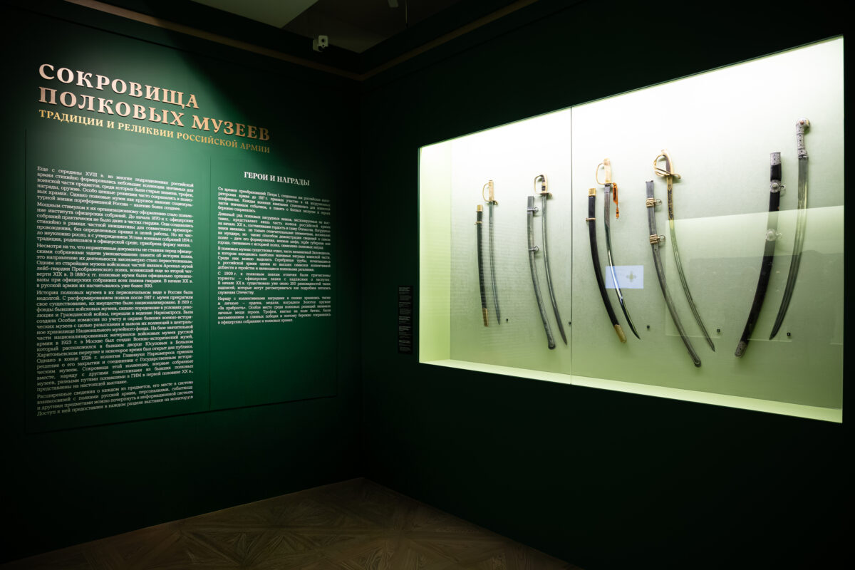 Экспозиция знакомит посетителей с уникальными памятниками военной истории из собрания Государственного исторического музея, включая реликвии полковых музеев, офицерских собраний и личных коллекций. Среди представленных предметов — полковые знамена, наградное оружие, Георгиевские серебряные трубы, именные кресты, мундиры, личные вещи и портреты высочайших шефов полков, а также произведения декоративно-прикладного искусства.